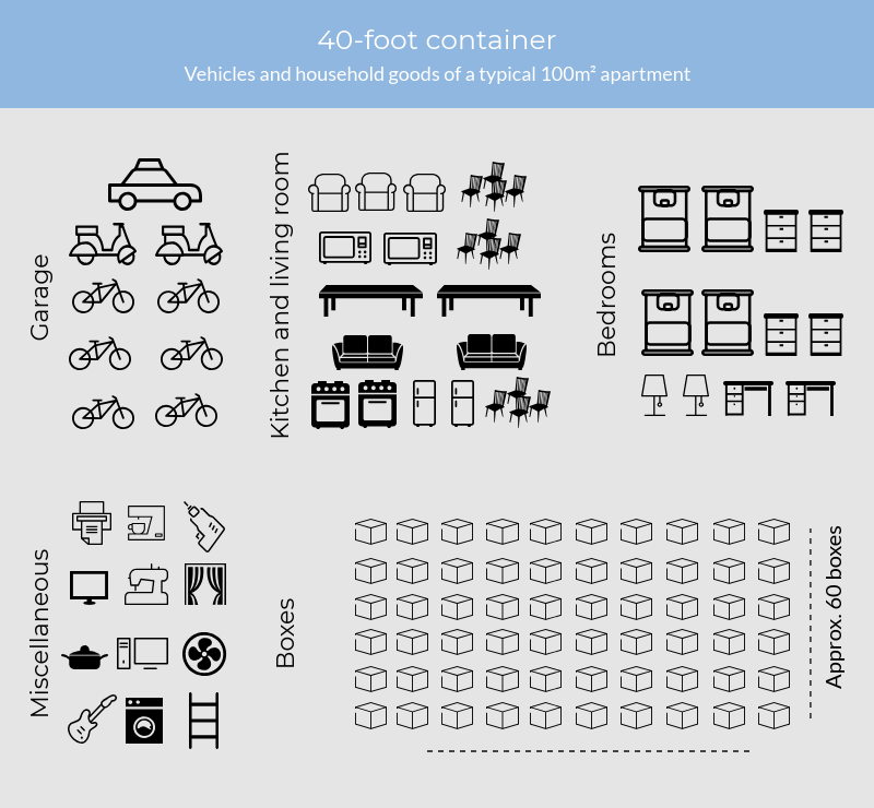 If you’re planning to take your car to your new residence, an 40-foot container is an ideal choice.
