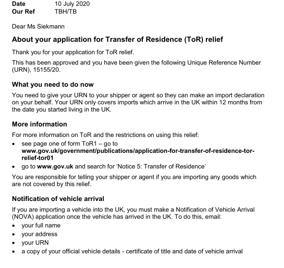 After filling the TOR, it will take around 10 – 15 days by UK government to submit and give back the confirmation with UN number.