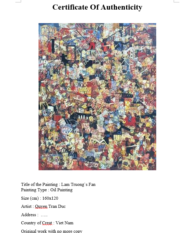 – Trước khi gửi hàng tranh đi nước ngoài, bạn sẽ cần chuẩn bị một số tài liệu cần thiết. Nếu gửi một bức tranh thì không cần nhiều giấy tờ, tuy nhiên trong trường hợp cần gửi nhiều bức tranh khác nhau, đặc biệt là tranh vẽ nghệ thuật ( không phải là tranh chụp ) thì người gửi cần chuẩn bị thêm :