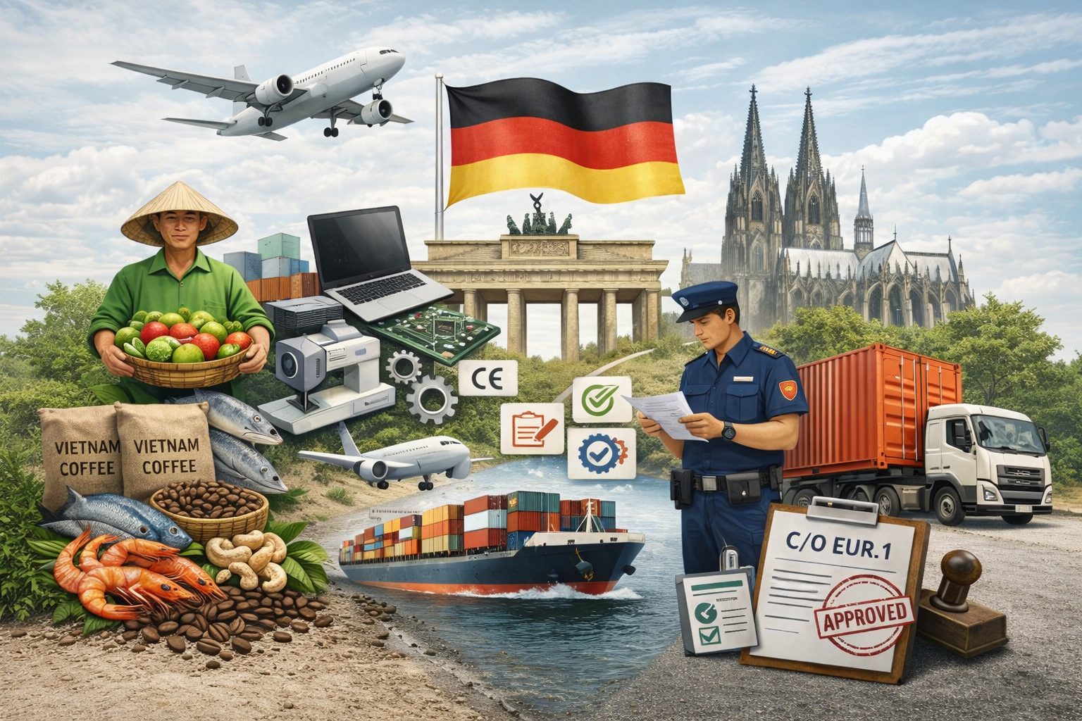 → Nếu C/O hợp lệ và đáp ứng quy tắc xuất xứ, nhiều mặt hàng có thể được hưởng thuế suất 0% hoặc rất thấp khi nhập khẩu vào Đức.